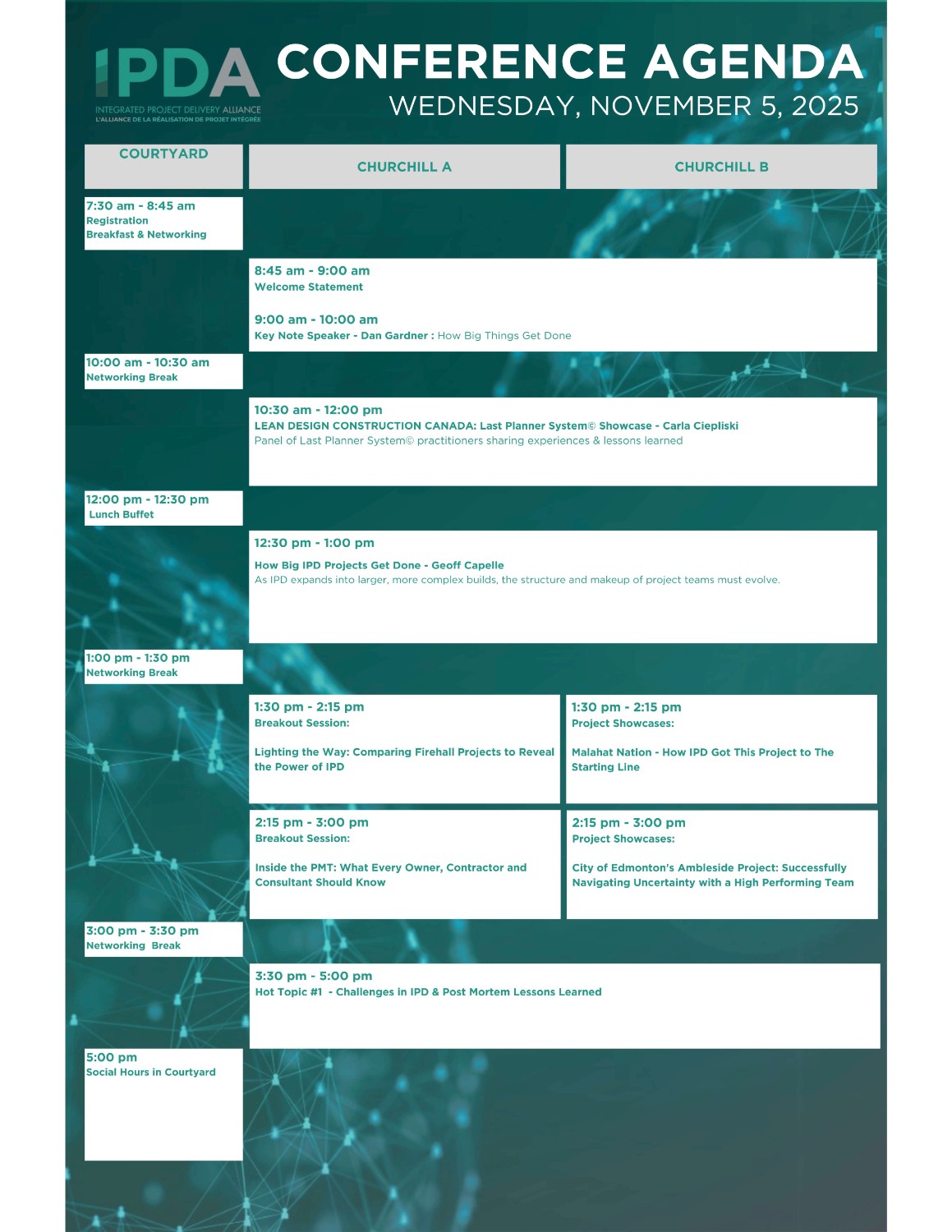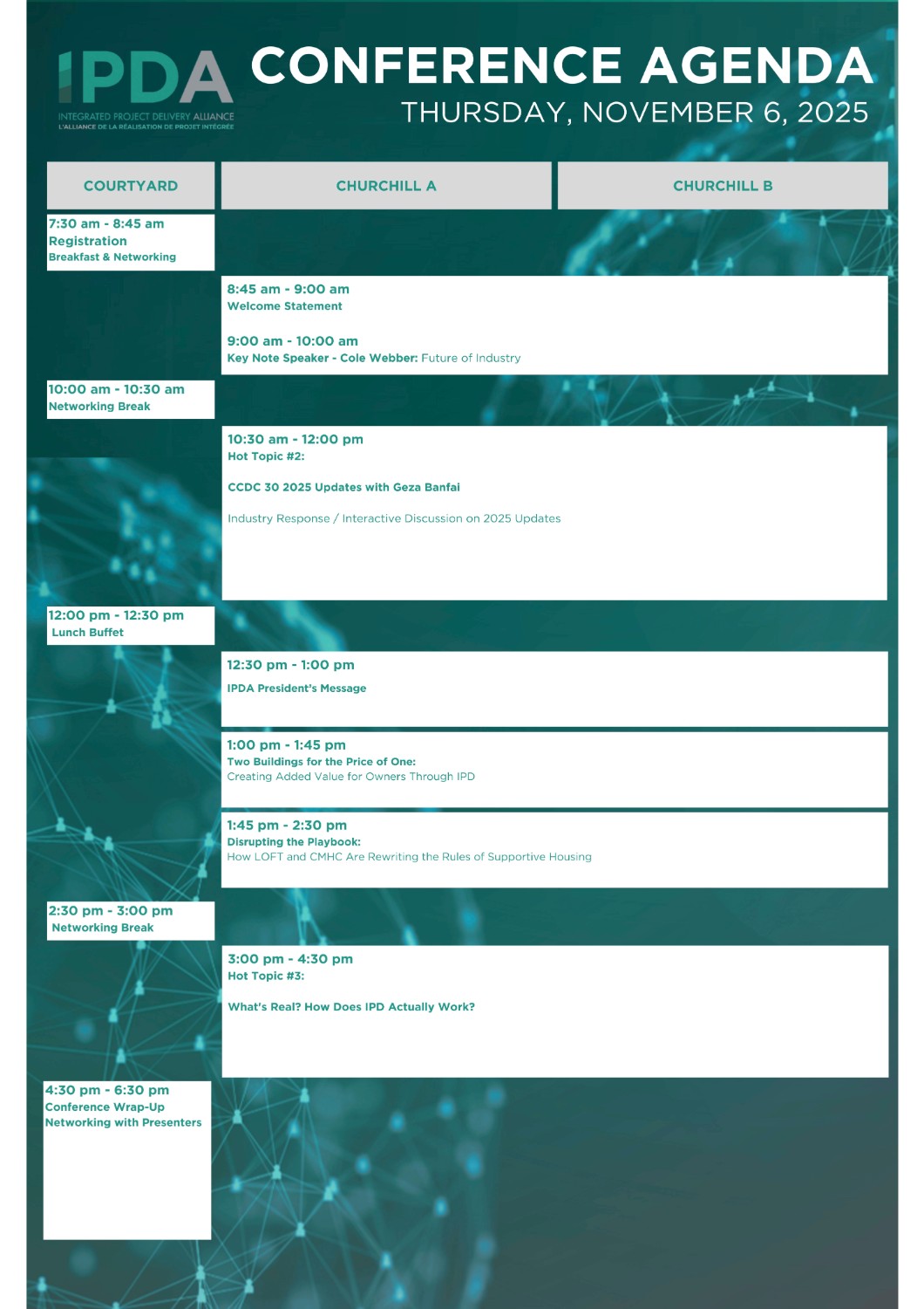 PLEASE NOTE: Agenda change Nov 6th - Disrupting Playbook: How LOFT and CMHC Are Rewriting the Rules of Supportive Housing has been replaced by : More Gym, Less Panic: How Major Scope was Added Mid-Stream at the Kitchener Indoor Recreation Complex